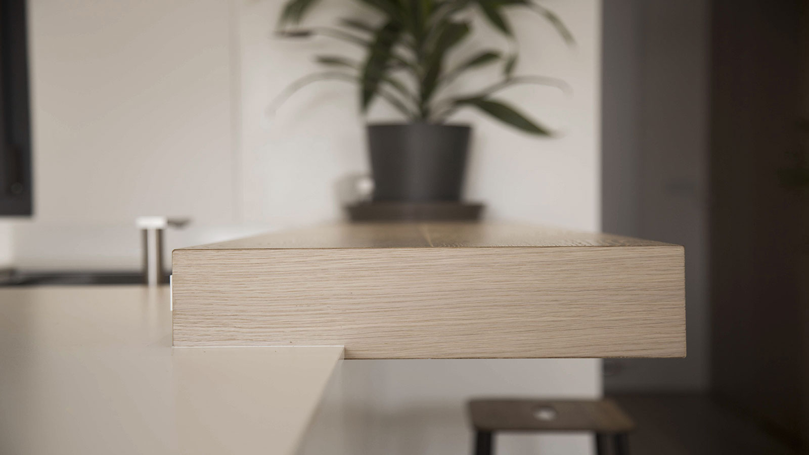 Los sistemas de iluminación LED pueden integrarse en cualquier módulo aportando visibilidad y calidez al amueblamiento. Las barras ya sean laminadas o de madera marcan una imagen limpia y se integran en las zonas de trabajo aportando versatili-dad y funcionalidad.