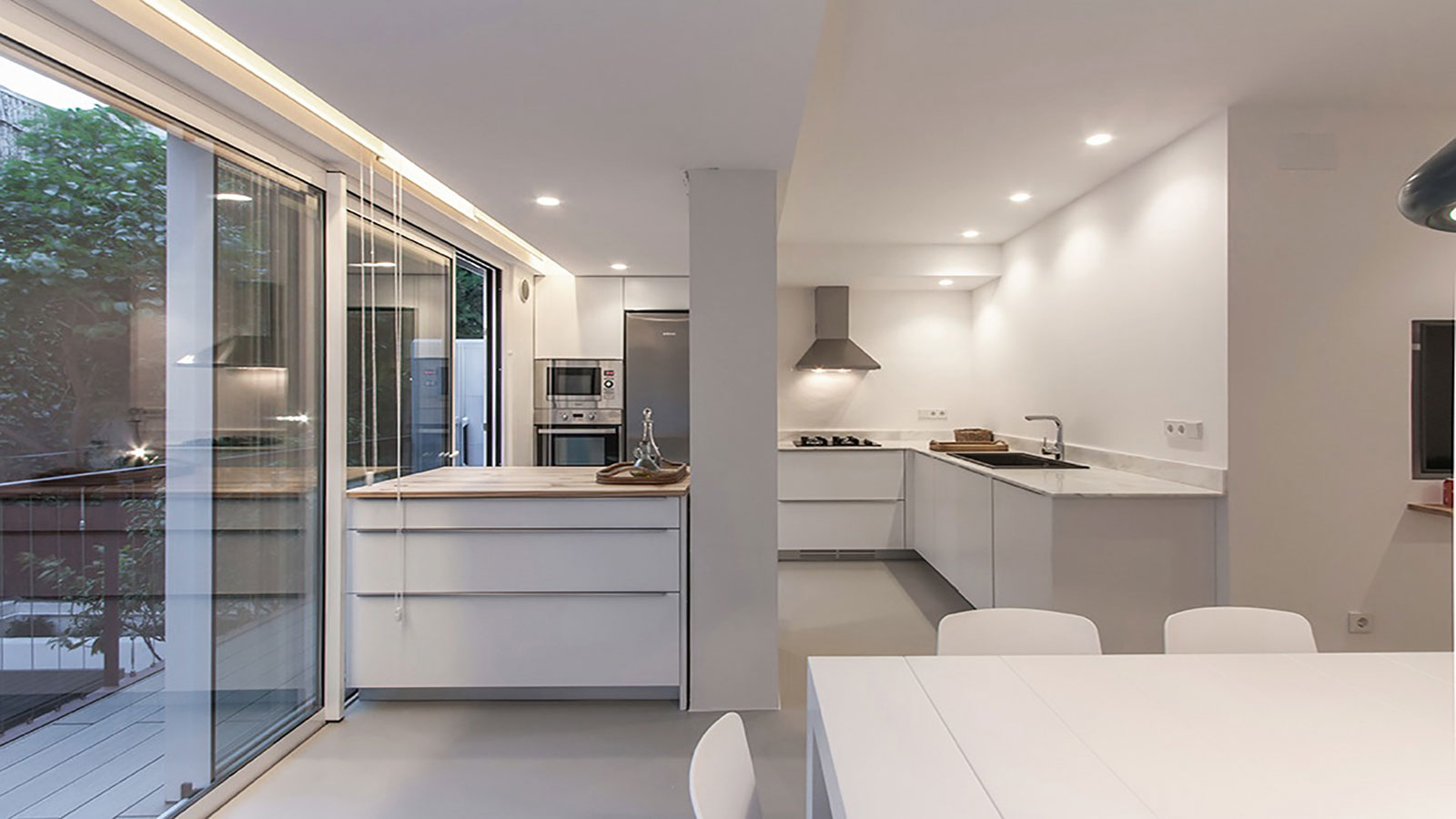 Cocina en blanco y madera abierta al salón 1 – 14