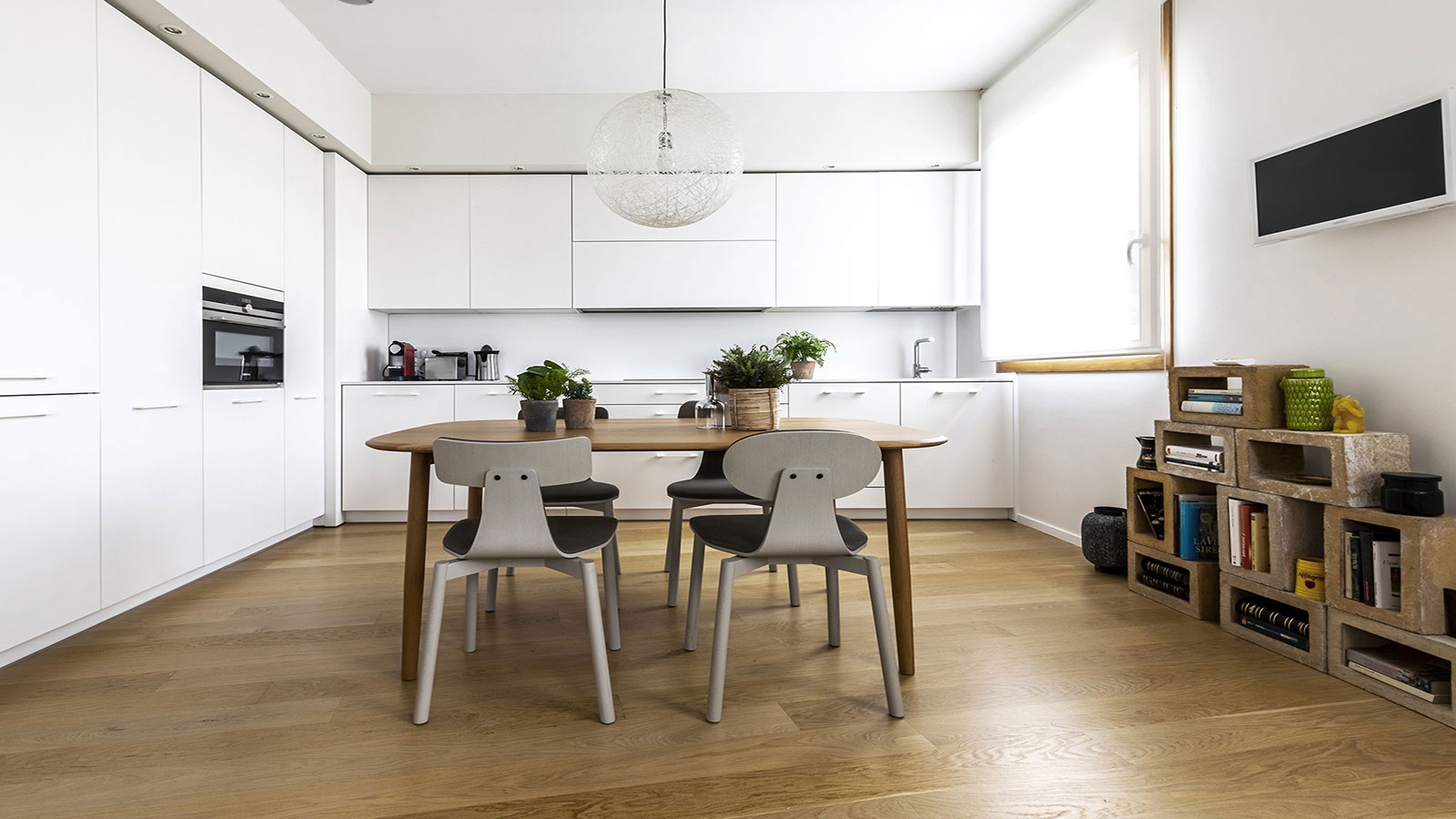 El resultado una cocina funcional, impecable, con amplia superficie de trabajo y al mismo tiempo cálida, espaciosa, y lúdica.